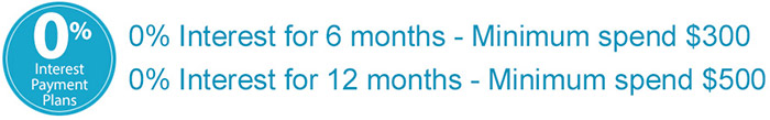 Approved customers only. Monthly payments required (exact amounts specified in your statement). Minimum spend applies to different plan term(s): minimum spend $300 for 6 months, $500 for 12 months. Paying only the minimum monthly payment will not pay out the purchase before the end of the plan. If there is an outstanding balance after the interest free period ends, interest will be charged at the Expired Promotional Purchase Rate, currently 29.99% (subject to change). Interest may also apply to other credit card transactions or if you do not comply with the T&Cs. Conditions of use set out the T&Cs of the Latitude Gem Visa credit card. Credit provided by Latitude Finance Australia ABN 42 008 583 588 Australian Credit Licence number 392145.