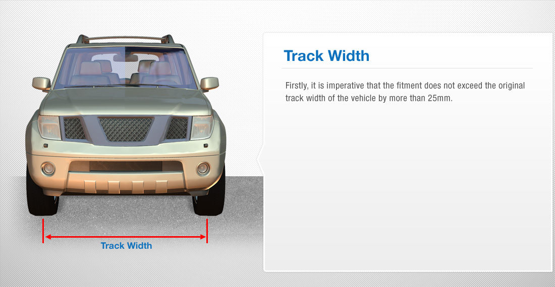 Each state sets limitations to the changes that you can make to your vehicle's wheel track. Your wheel track is the distance between two wheels that sit side-by-side. The wheel track is affected when you change your wheels offset.